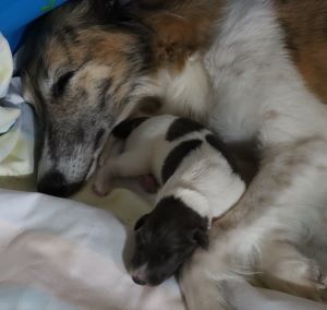 oben links sieht man Yasha als Welpe zwischen den beiden Hovis-2020;
