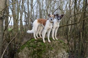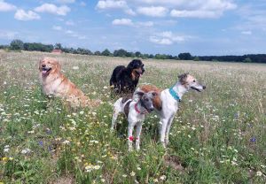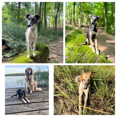 So ein Rudelleben ist aufregend! Yasha spielt gerne mit ihren Töchtern. Januar 2025 Spaziergang mit Freunden in Berlin.