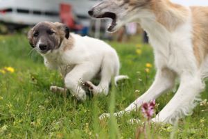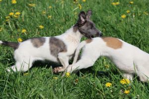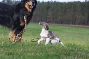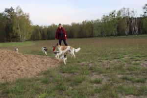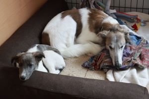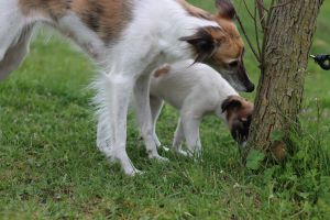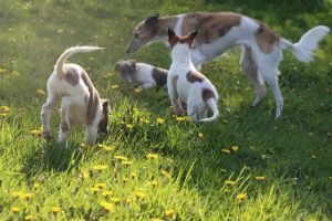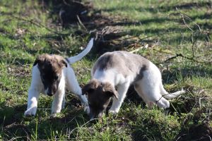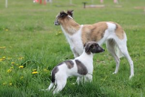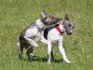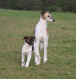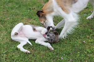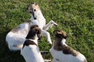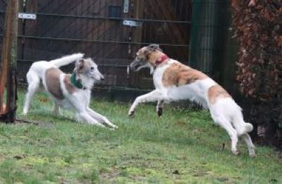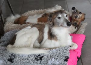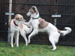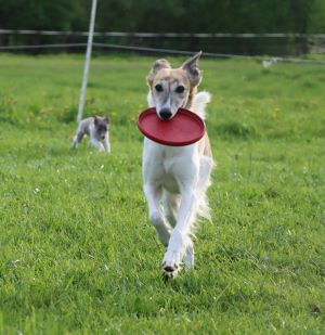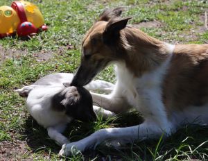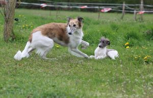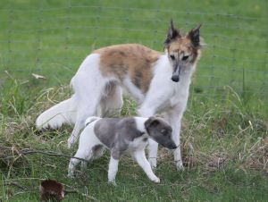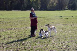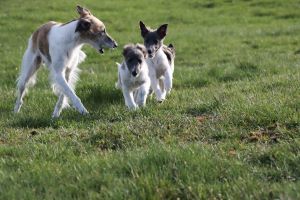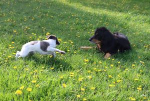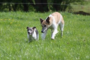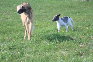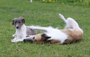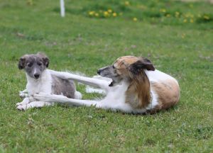 Alvy ist eine Schnelle Wiesenflitzerin, Mama Yasha hat zu tun hinterherzukommen. Vom Charakter ist sie sprunghafter, agiler als Yasha und macht die Aufgaben bei der Hundeschule weil es ihr Spaß macht. Yasha macht alles aus Liebe zu mir. Onkel Borka klaut sie auch schon mal das Futter vor der Nase weg, oder knurrt ihn an. Keine Achtung vor dem Alter, immerhin ist Borki 14Jahre alt. Es ist schön das wir uns für Alvy entschieden haben. Im Sommer wird sie geröntgt und es wird ein Herzultraschall gemacht. Dann kann sie wenn alles in Ordnung ist die ZZP (Zuchtzulassungsprüfung) ablegen und später einmal selbst Mutter werden.