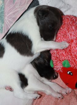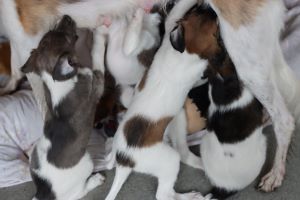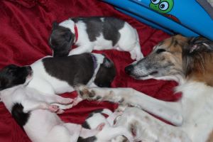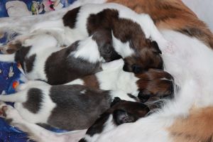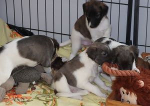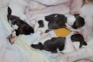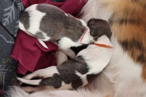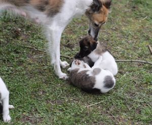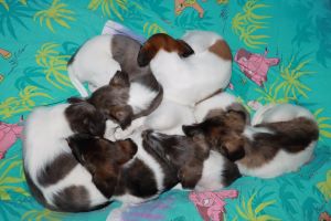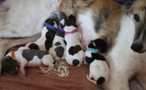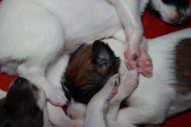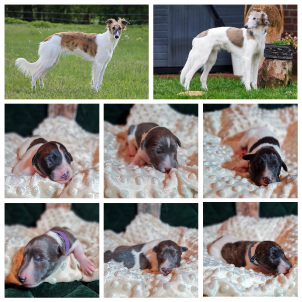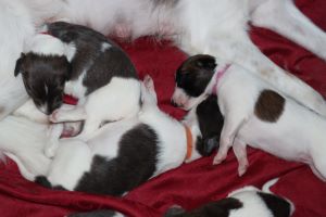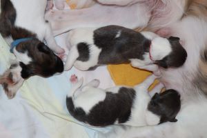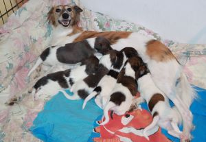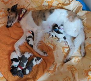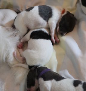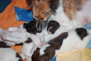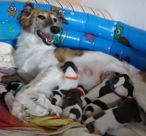 Da wir weiße Hunde mit Platten (Particolor) lieben, freuen wir uns auf die bunte Welpenbande.
