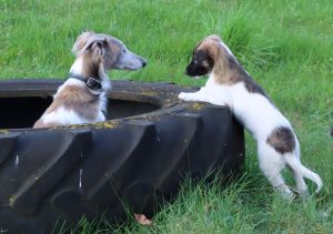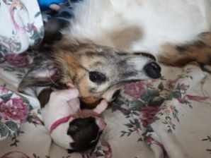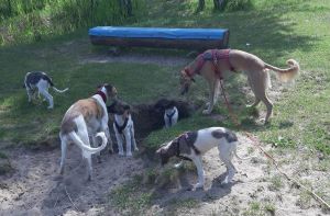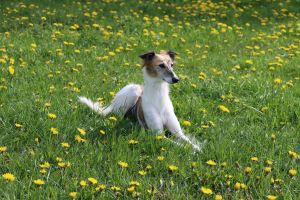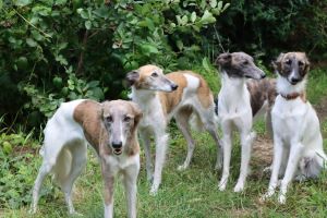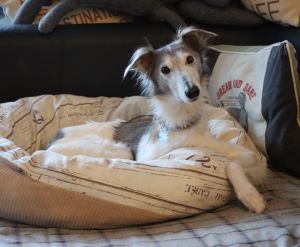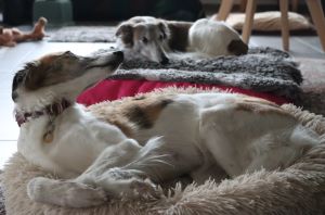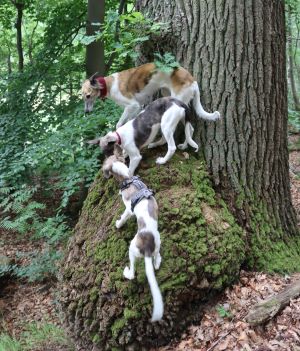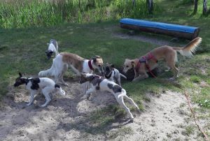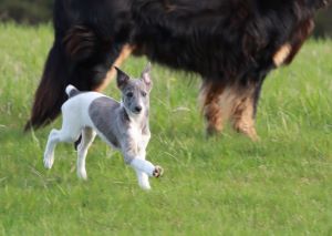 Sie ist sehr aufgeschlossen und sozial mit anderen Hunden und liebt es mit ihren Windhundfreunden zu flitzen. Ihr Charakter ist einfach toll - sie ist folgsam, menschenbezogen, lustig, und verschmust.