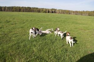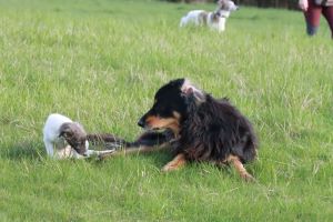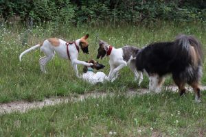 ⇑ Am Samstag gab es ein kleines Wiesenflitzer Treffen und die zukünftigen Welpeneltern lernten Papa Duke und die Familie der Lords kennen.