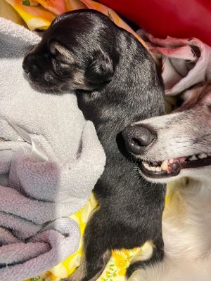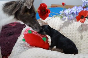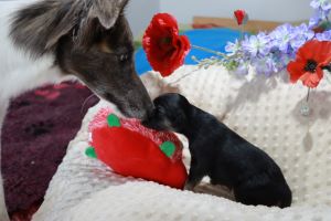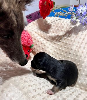 Am 4.05.24 ging unser Hovawart Rüde Borka über die Regenbogenbrücke und am 06.05.2024 wurde eine kleine Saddle Hündin von insgesamt 8 Welpen geboren.