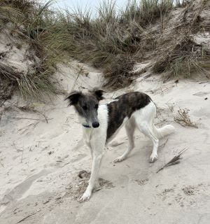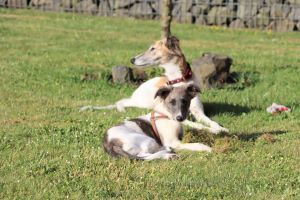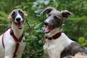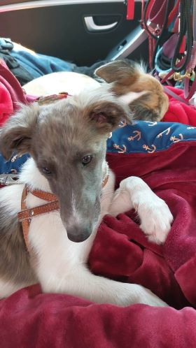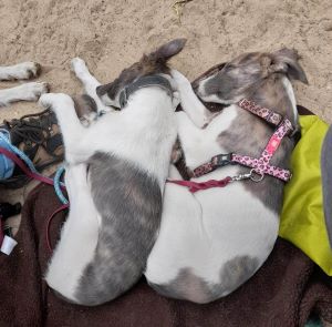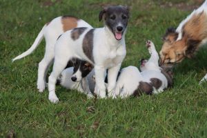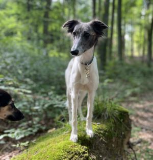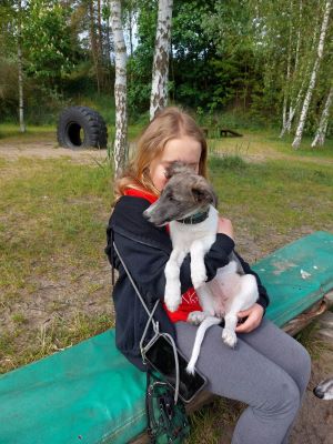 Alvy ihr erster großer Ausflug mit vielen Langhaar Whippets.