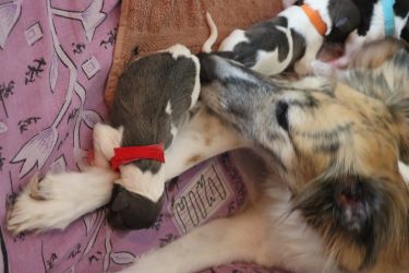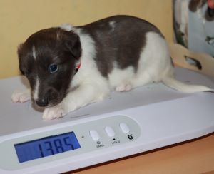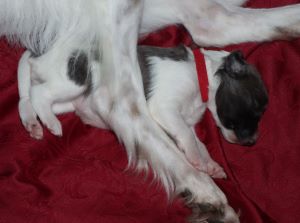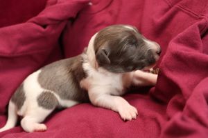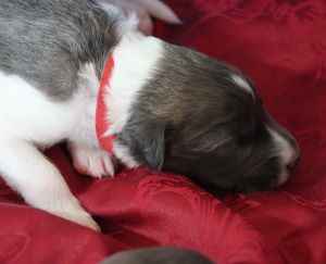 Hündin rot/Vanya wurde am 02.03.2023 um 3:45 Uhr in Grieben mit 320 Gramm geboren.