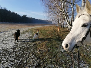 Hoffentlich klappt alles mit Arwen und Borka. Also auf nach Grieben. Dann luden wir die beiden Grossen ins Auto und fuhren zu einem Kennen-Lern-Spaziergang. Die Hovis waren auf dem neutralen Boden fast zuvorkommend zu unserem Familienzuwachs.
