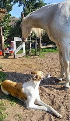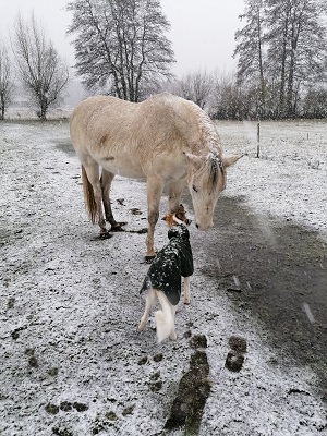 Die Ängste waren umsonst gewesen. Yasha ist super sozialisiert und hat sich sehr zurückhaltend den Hovis gegenüber verhalten. Ich würde behaupten, sie hat die Weltherrschaft auf unserem Hof.