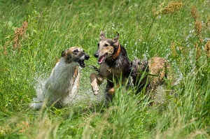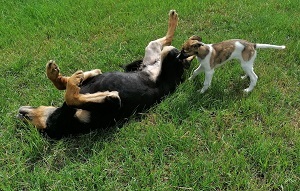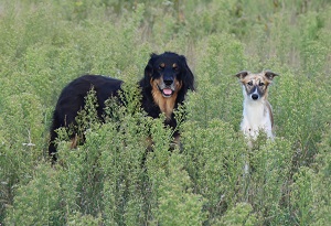 Zusammen flitzen die beiden 1x in der Woche über unsere Wiesen. Foto: Sommer 2021.