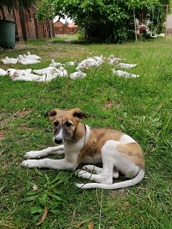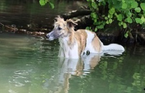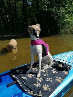 Schwimmen geht Yasha nicht, aber sie flitzt ins Wasser und natürlich wieder her raus. Hier war sie erst 1Woche bei uns in Grieben