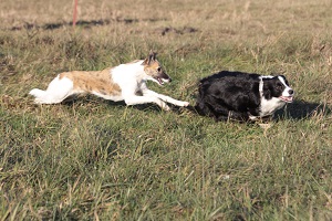 Fly, Sina ihre Border Collie Hündin flitzt mit Yasha über die Wiesen. Doch Yasha fängt sie alle.