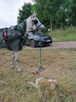Ich wollte es nicht glauben als Birgit mal zu mir sagte, später wird deine Yasha nicht neben der Kutsche laufen wie die Hovis. Wieso was dann? Sie wird auf der Kutsche bei dir bleiben.
