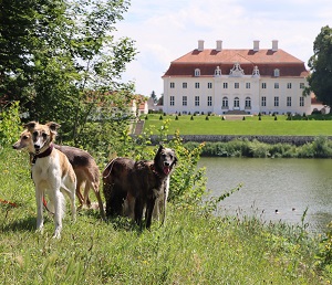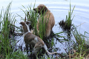Wir trafen uns mehrere Male an der Elbe mit anderen Langhaar Whippets.