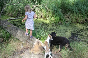 Auf unseren Spaziergängen gibt es immer etwas zu entdecken. Einmal lief Yasha im Winter auf das Eis an diesem Graben, dabei rutschte sie ins Wasser, aber Frank sprang rein und rettete meine Yasha.