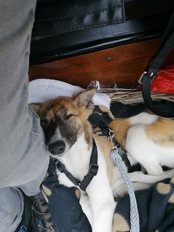 Während der Autofahrt war sie sehr entspannt und fühlte sich zwischen unser Enkelin Charline und mir sehr wohl.