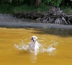 Juni 2021, der Kalksee in der Nähe von Neuruppin ist so schön, da konnte Yasha nicht wiederstehen.