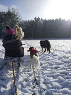 Im Februar 21 hatten wir etwas Schnee, wir fuhren Schlitten, alle hatten Spaß. Als Kutscherin war Yasha auch sehr cool.