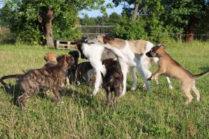 Am 2.03.2023 wurden die anmutigen Wiesenflitzer geboren. Yasha wurde Mutter von 2 Rüden und 4 Hündinnen in Particolor.